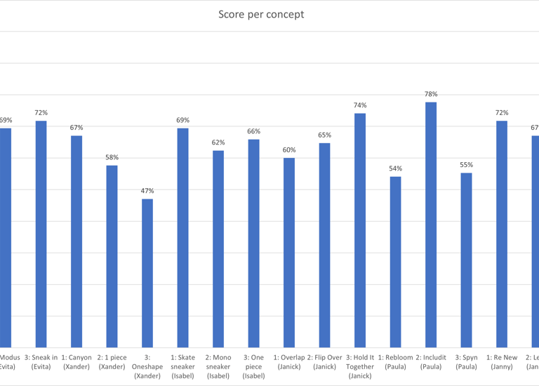 Gefocust op elk duo een strategie gaan we verder naar de conceptfase, waar iedereen hun hoogst scorende ideerichting verder gaat uitwerken.