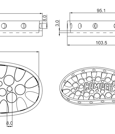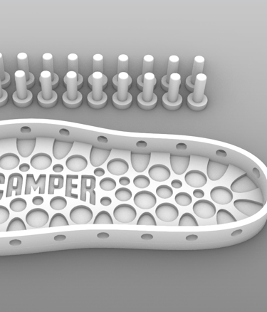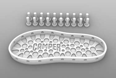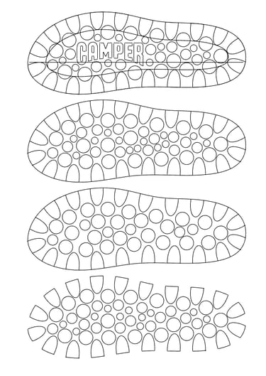 Verder is het Camper logo verwerkt in het profiel, iets wat je terug ziet komen bij elke Camper zool. De halve ovalen zitten onder de plaatsing van de gaten in de zool. Dit geeft meer stevigheid en ruimte op de verbindingsplekken.