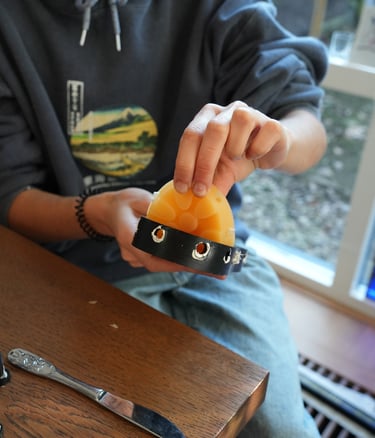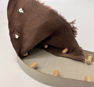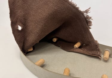 Hier is getest met nature inspired materialen. Je kan bij zowel de mycelium en banaan in het eind materiaal goed zien waar het vandaan komt. De materialen zijn zo weinig mogelijk bewerkt en blijven herkenbaar.