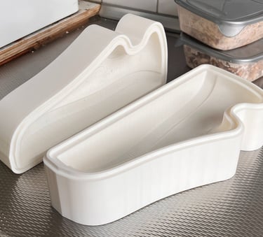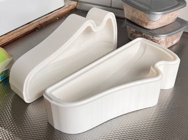 Voor het model is bewust gekozen voor silicone. De uiteindelijke zool zou van gevulkaniseerd natuurrubber gemaakt moeten worden. Vulkanisatie van natuurrubber vereist industriële processen die niet uitvoerbaar zijn in een onderwijsomgeving. Silicone maakt het mogelijk om de vorm, flexibiliteit en ergonomie van de zool te testen in een gietbare en elastische vorm. Het model is bedoeld voor vorm- en functie en is niet materiaal representatief voor het uiteindelijke product.