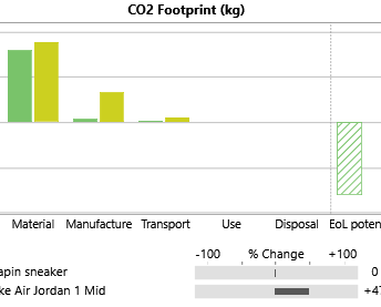 Met GRANTA EduPack is de Nike Air Jordan 1 Mid geanalyseerd. Er is gekeken naar de vervuiling op een aantal niveau's.