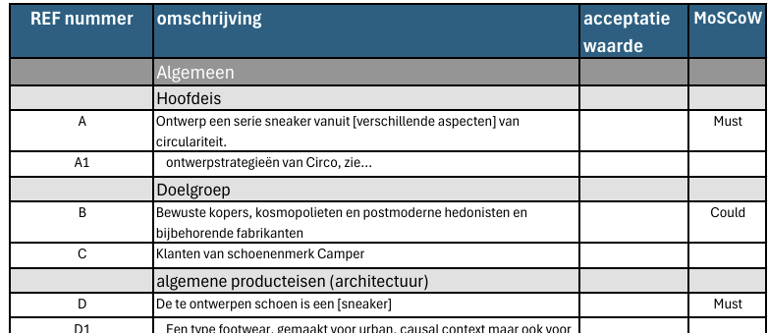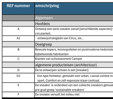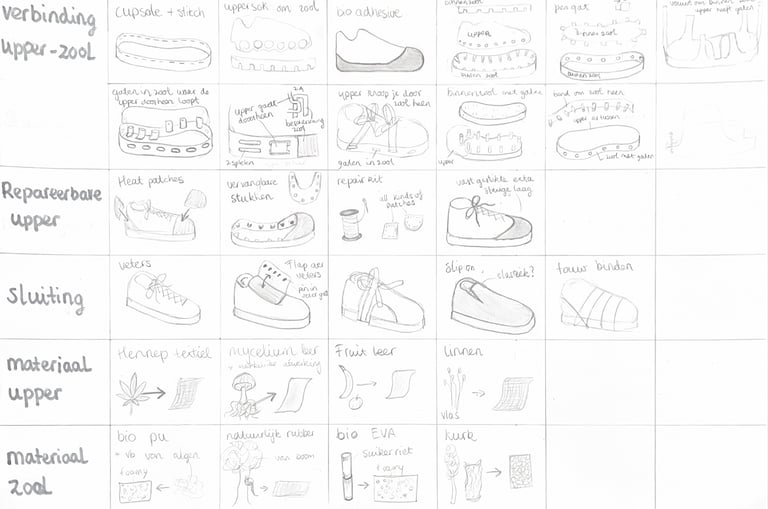 Hier is gekeken naar sneakers die modulair zijn. Bij standaard sneakers worden alle onderdelen verlijmd en zijn ze niet te vervangen.