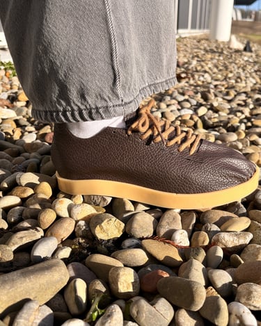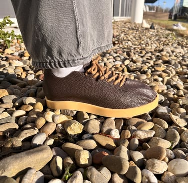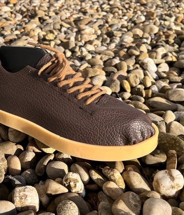 Hier zocht ik naar sneakers die geïnspireerd waren op de natuur. Het zijn niet zomaar duurzame sneakers, maar ze eren de natuur. Waarbij materialen zo weinig bewerkt en herkenbaar zijn.
