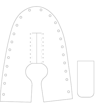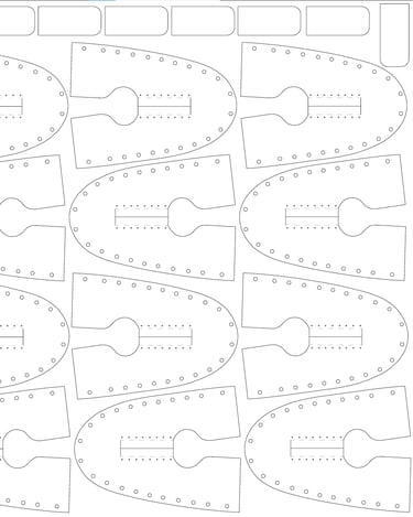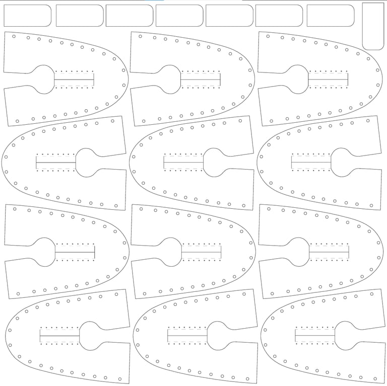 Het patroon voor de upper bestaat uit 2 delen. De tong moet apart worden bevestigd. Er zitten gaten rondom de gehele buitenrand, waarmee de upper aan de zool word bevestigd. Hier zijn de plekken van geoptimaliseerd.