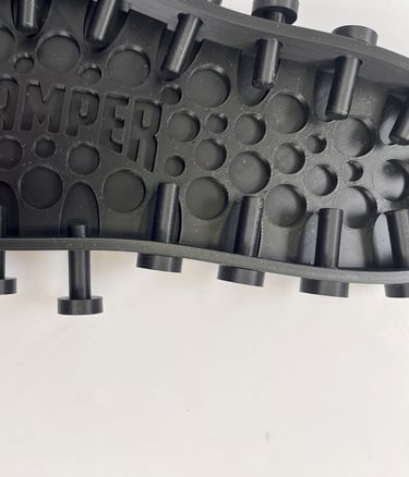 3D mal ontworpen waar de zool voor het zichtmodel in gegoten kan worden. Er zitten losse pinnen in die na het gieten eruit gehaald worden, waardoor de zool er ook makkelijk uit kan komen. Het profiel en de zijkanten hebben allemaal een lossingshoek van 3 graden. Vervolgens wat test printjes gedaan voor de tolerantie van de gaten met de pinnen.