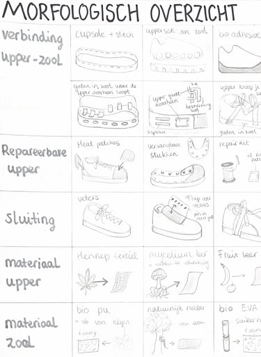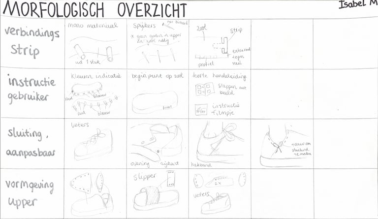 Met de nieuwe inzichten is een morfologisch overzicht gemaakt. De grootste focus was de verbinding van de upper met de zool. Deze moet sterk en geïntegreerd zijn. Zo mogen er geen verbindingen aan de buitenkant zitten omdat dit als eerst wegslijt. De verbinding moet dus aan de binnen kant zitten, dit zorgde voor een echte uitdaging.