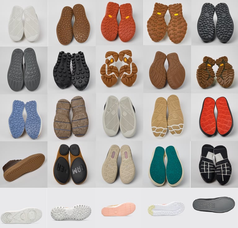 Om deze reden heb ik mijn focus verlegd. Ik heb onderzocht waar overlap zit tussen de kerninzichten uit mijn skatesneaker-onderzoek en de ontwerpwaarden van Camper. Een belangrijk focuspunt binnen mijn skateonderzoek was de verborgen sterke verbinding tussen zool en upper, ontwikkeld vanuit zowel esthetische als functionele overwegingen.