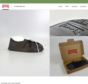 Om focus te houden op de kern van het ontwerp is gekozen voor een bestaand merk (Camper) als visuele referentie. Esthetiek is ondersteunend en niet leidend.