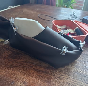 De uiteindelijke keuze is gevallen op kombucha leer. Ookal is linnen op dit moment en goedkoper en beschikbaarder bio-based alternatief en is myceliumleer ook al bewezen succesvol in sneakerdesign. Kombucha leer past het beste bij de toekomstvisie van dit project. Het is een compleet andere manier van het produceren van materialen. Groeien door fermentatie.