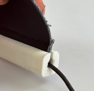 De upper is verbonden met de zool d.m.v. een c-profiel. In de upper een trekkoort of strip PHA genaait die geklemd wordt in het c-profiel. Ervan uitgaande dat de PHA copolymeer flexibel genoeg is, zou de matrijs zonder undercuts e.d. ontwikkeld kunnen worden. Echter moet hier een expert naar kijken.