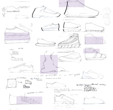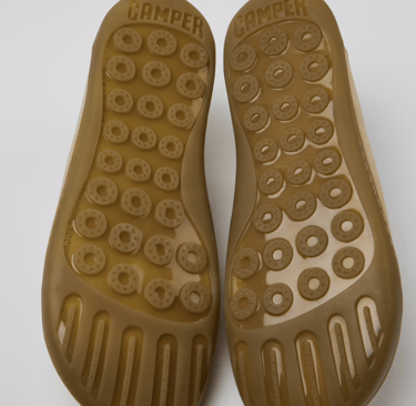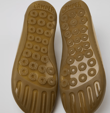 Voor de zool is er inspiratie gehaald uit al bestaande zolen uit het CAMPER assortiment, zie de afbeeldingen. Daarnaast zijn er lijnen aan de zool toegevoegd om te accentueren dat het om een barefoot zool gaat.