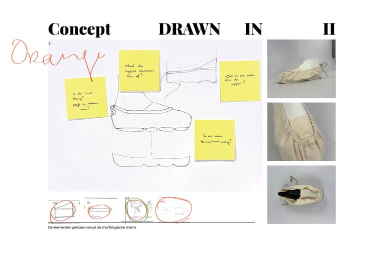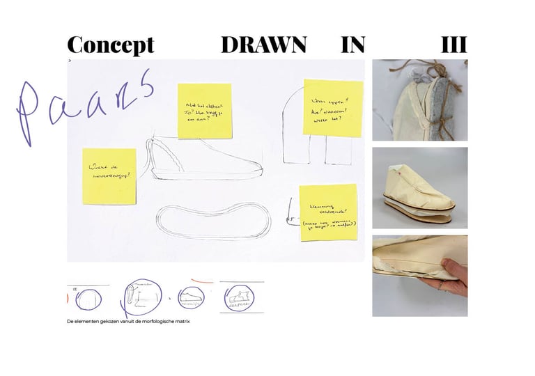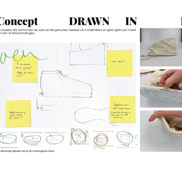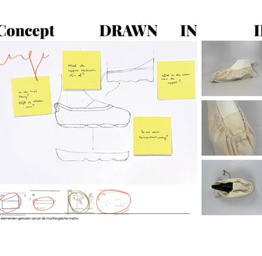 Bij concept 3 is er gebruik gemaakt van een trekkoort om de hiel. Om ervoor te zorgen dat de sneaker beter bleeft zitten aan de voet van de gebruiker. Daarnaast is er gekeken naar een klemming van de upper door de zool. Dit bleek echter niet erg effectief.