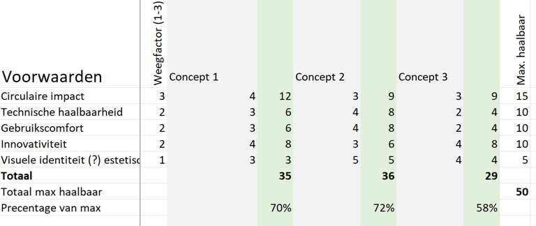 Dit criterium is het vertrekpunt en de kern van de ontwerpvraag. Een hoogwaardige circulaire oplossing is de primaire doelstelling.