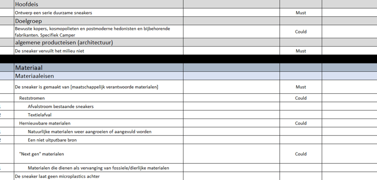 Er is geïnventariseerd wat de conventionele materialen en technieken zijn die komen kijken bij huidige sneakers. Dit is in te zien via de link naar het MIRO board.
