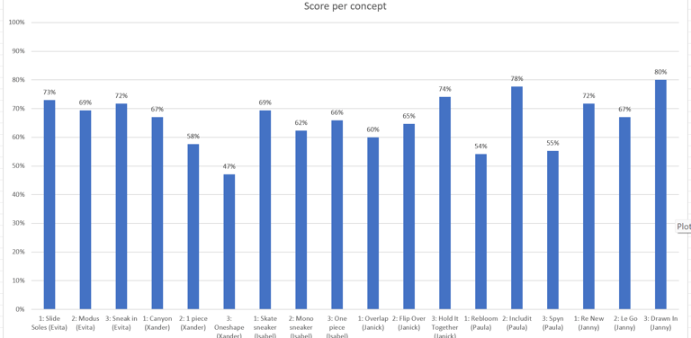 Concept 2 heeft met 72% de hoogste score. Daar vlak achter komt concept 1 met 70%.