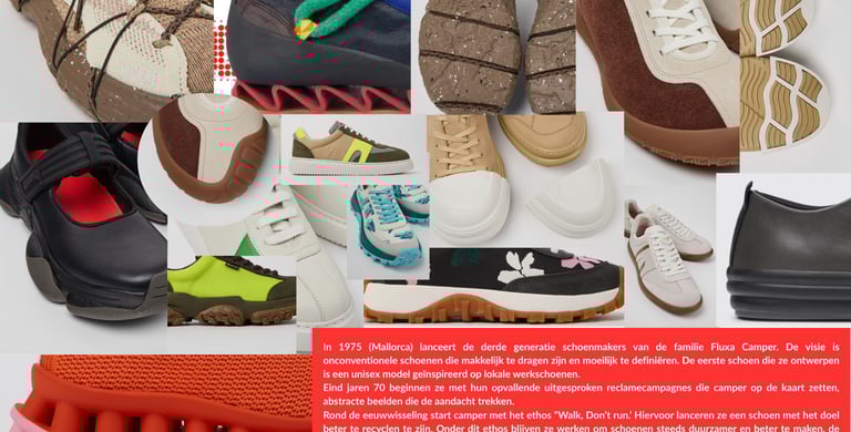 Er is gekozen om de collectieschoenen te ontwerpen voor “Camper”. Camper is een corsicaanse onderneming schoenen ontwerpt en produceert. Ze hebben een brede doelgroep en focussen zich o.a. op vernieuwende en innovatieve schoenen.