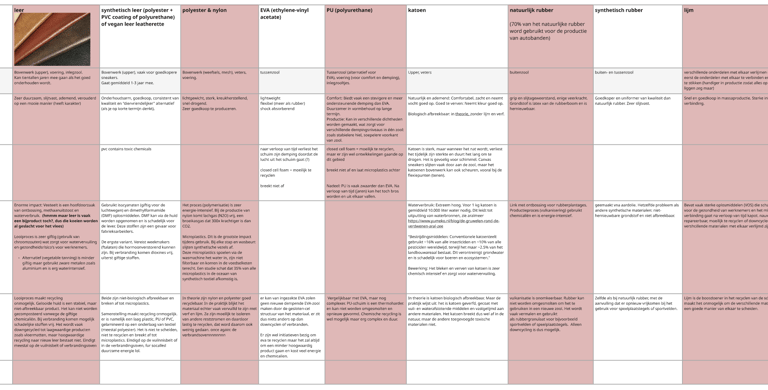 1. analyse van materialen die al gebruikt worden in conventionele sneakers en “next gen” materialen;