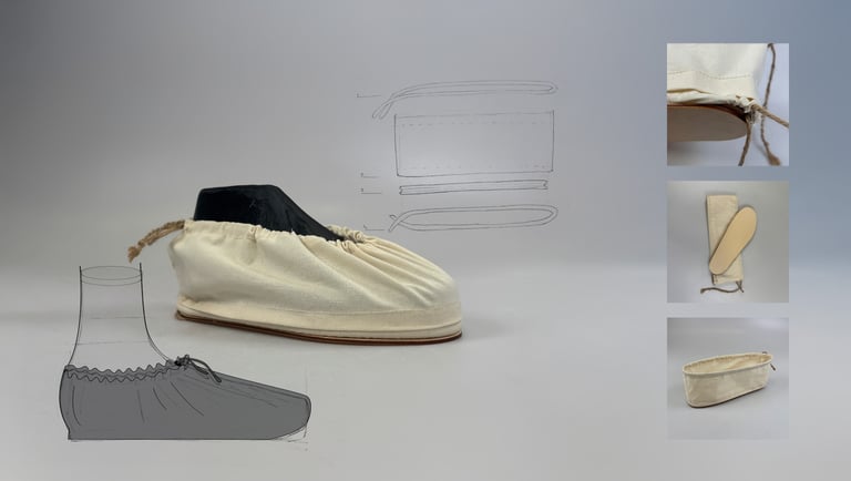 Geexperimenteerd met een synthetisch leer om te kijken hoe het materiaal zich gedraagt als het zo gevormd wordt. Daaruit blijkt dat het belang van een soort flap over de wreef. Het materiaal is namelijk minder bewegelijk als het katoen dat in de bovenste modellen is gebruikt.