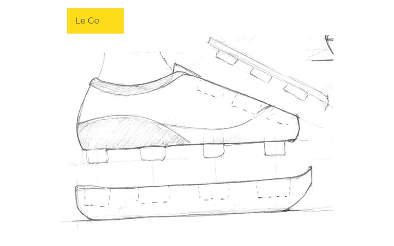 Maakt gebruikt van een soortgelijke verbinding als LEGO blokjes. De gebruiker kan de verschillende onderdelen verwisselen wanneer ze kapot zijn of wanneer de gebruiker een andere uitstraling wil geven aan de schoen.