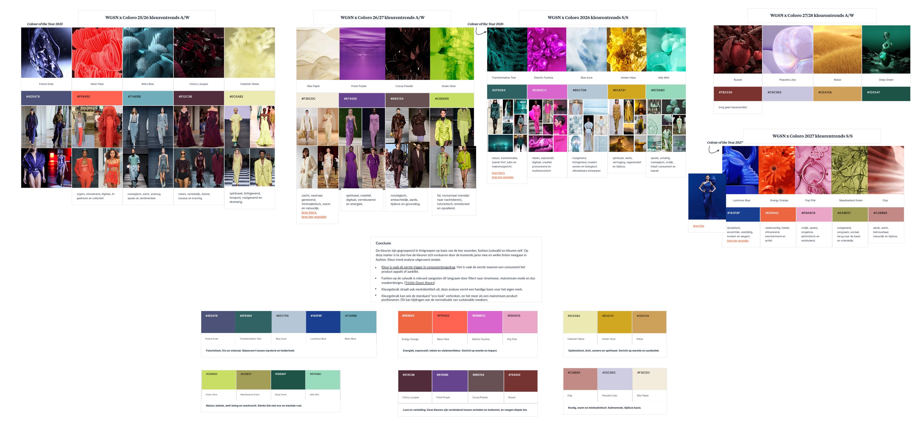 Samen met Paula heb ik dieper gekeken naar de kleurentrends en deze gelinkt aan de mode industrie om aan te tonen dat de kleuren opgenomen worden en meegaan in de aankomende periodes.