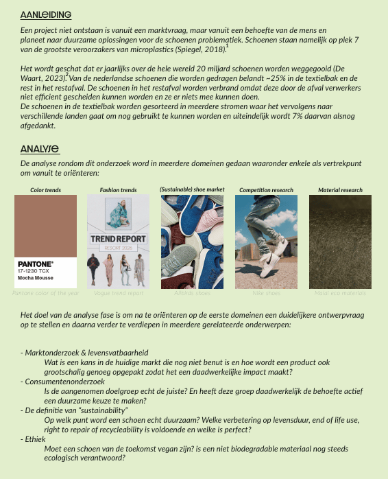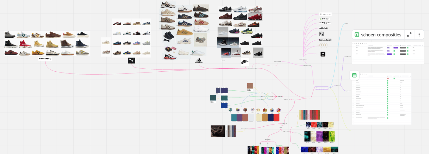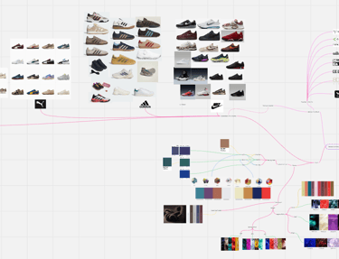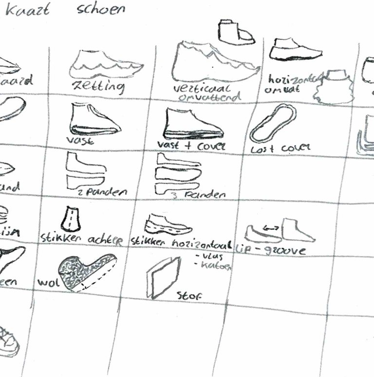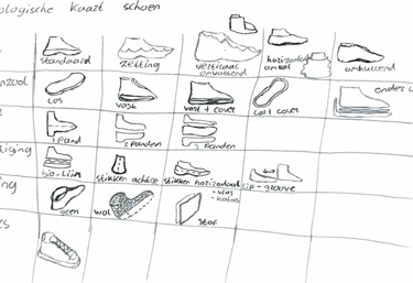 Door dit te doen werd de breedte waarin onze ontwerpen lagen duidelijk en was het ook concreet aan te tonen in welke richtingen we nog moesten gaan om een diverse collecte sneakers te ontwerpen.