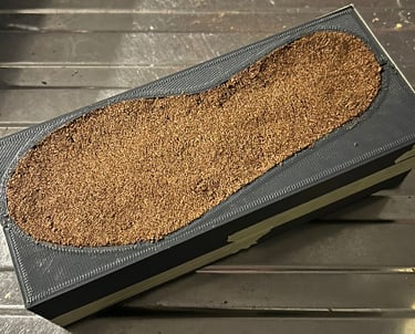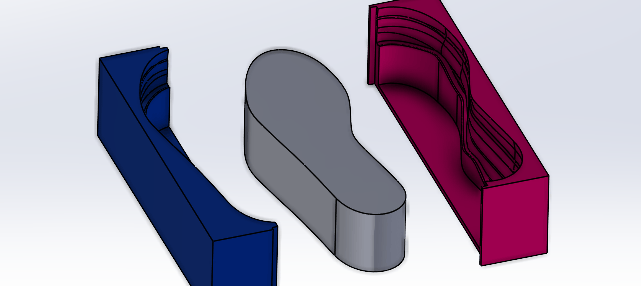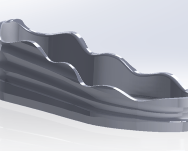 Om de zool in één keer in een matrijs te kunnen maken moet er gebruik worden gemaakt van een 3 delige matrijs.