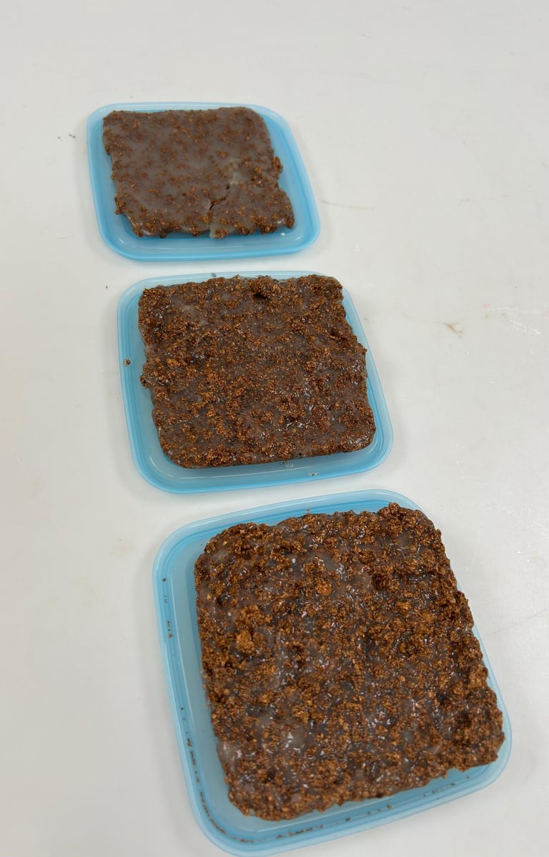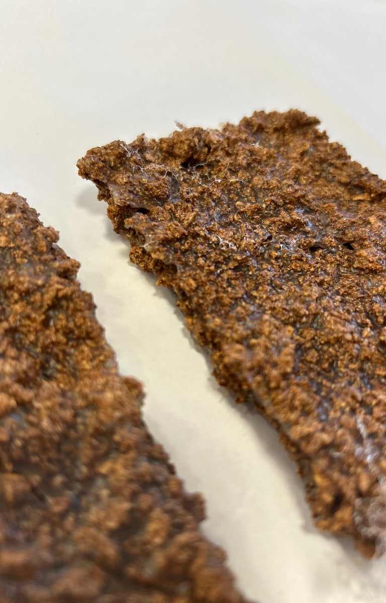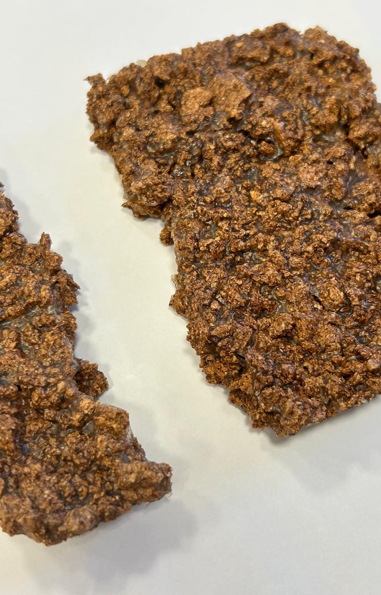 Na een nacht drogen in de droogoven is het materiaal een stuk sterker geworden, het vulmateriaal verankerd zich rond de kurk wat zorgt voor extra stevigheid en verminderd het risico op scheuren wat andere wel hadden in hun materialen
